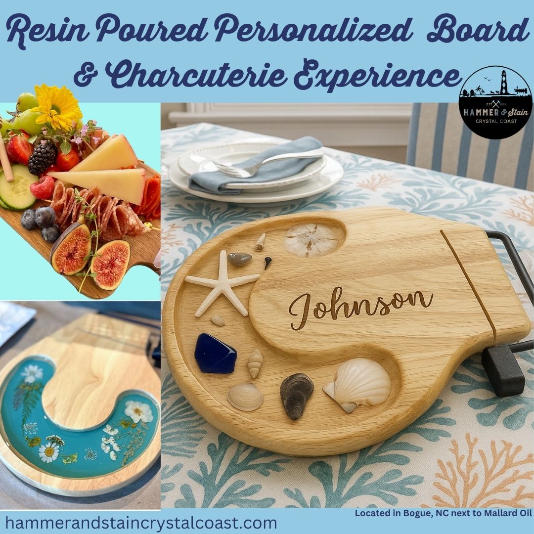 Add a guest for the Charcuterie Experience workshop. This add-on allows a guest to join the tasting and pairing without adding an additional board. Couples will only receive one personalized resin poured board.